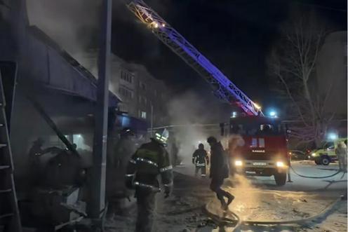 据Kursiv.kz报道,2月26日深夜,位于哈萨克斯坦北部的舒钦斯克市«抓饭中心»咖啡馆发生爆炸。该建筑毗邻一栋五层住宅楼,燃气混合物爆燃后引发火灾。
